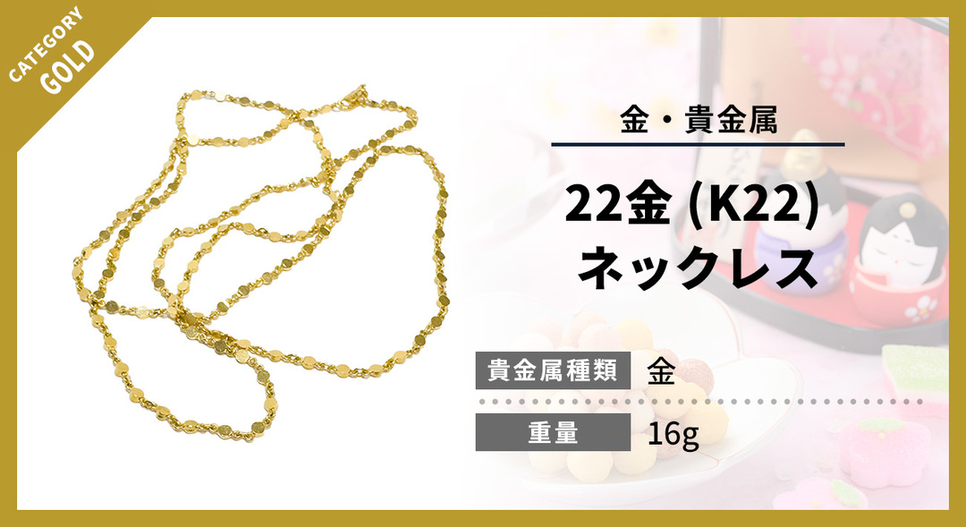 当店では22金 (K22) ネックレスの価値を正確に見極め、最新の金相場を反映した査定を行っています。